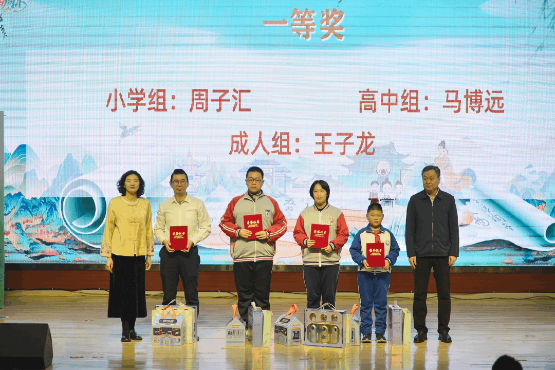 自本届诗词大会开赛以来,从小学组、初中组、高中组、成人组四个组别3000共多名选手中选拔出115名优秀选手晋级决赛。经过前期的激烈比拼,初中组25位选手突破重围,登上决赛舞台,进行了一场诗意对决。决赛共分四轮,在“飞花令”环节,选手们对答如流,现场氛围紧张而不失活跃,台下观众爆发出阵阵掌声。随着最后一轮“英雄问鼎”抢答结束,初中组决出最终冠军,至此本届“诗词大会”所有赛事全部结束,周子汇、苏小满、马博远、王子龙分别获小学组、初中组、高中组和成人组冠军。