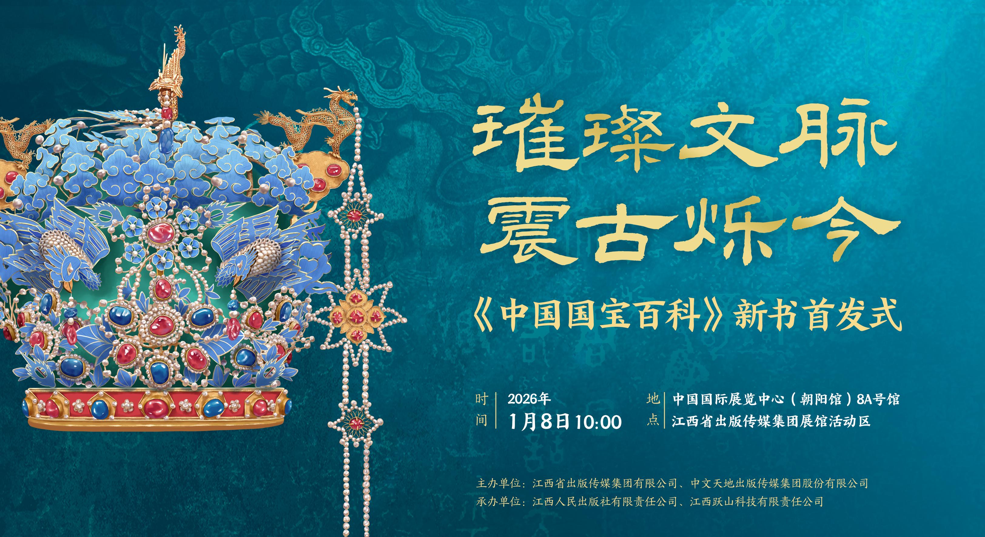 时光流韵,文脉绵长;国宝为媒,共赴新程。2026年1月8日上午,由江西省出版传媒集团有限公司、中文天地出版传媒集团股份有限公司主办,江西人民出版社有限责任公司、江西跃山科技有限责任公司承办的《中国国宝百科》新书首发式在第38届北京图书订货会现场圆满举行。