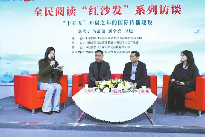 1月9日,在全民阅读“红沙发”系列访谈中,中新国传(北京)文化科技有限公司董事长马萧萧、河南大象国际传播中心总编辑刘全亮、四川国际传播中心总编辑李旭,围绕“‘十五五’开局之年的国际传播建设”主题,结合“十四五”实践与“十五五”新形势,就国际传播体系建设、内容创新与技术赋能展开深入交流。
