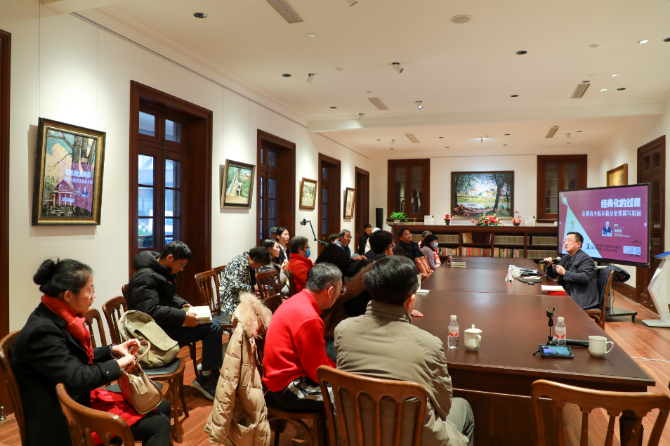 日前,巴金图书馆文坛茶话会第38期举行。中国作家协会副主席、全国政协文化和文史学习委员会副主任阎晶明受邀主讲,以“经典化的过程——从鲁迅小说衣着及金钱描写说起”为主题,带领现场及线上观众走近鲁迅的文学世界。