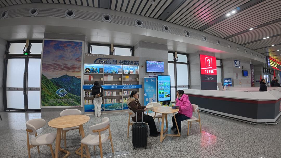该驿站由威海市图书馆和威海高铁站联合打造,以推广纸质阅读、重拾传统阅读美好为初心,让旅客停留时长里的焦虑等待转化成轻松的文化漫游。同时,驿站还精心打造了威海非遗项目与文旅成果固态展示区,将非遗项目、旅游资源,以及文化项目推广变为常态化展示,把“高铁+非遗+旅游+文化”打造成威海市、威海站的一张靓丽的名片,让大家在威海站乘车时不仅得到出行服务,更丰富了文化体验。