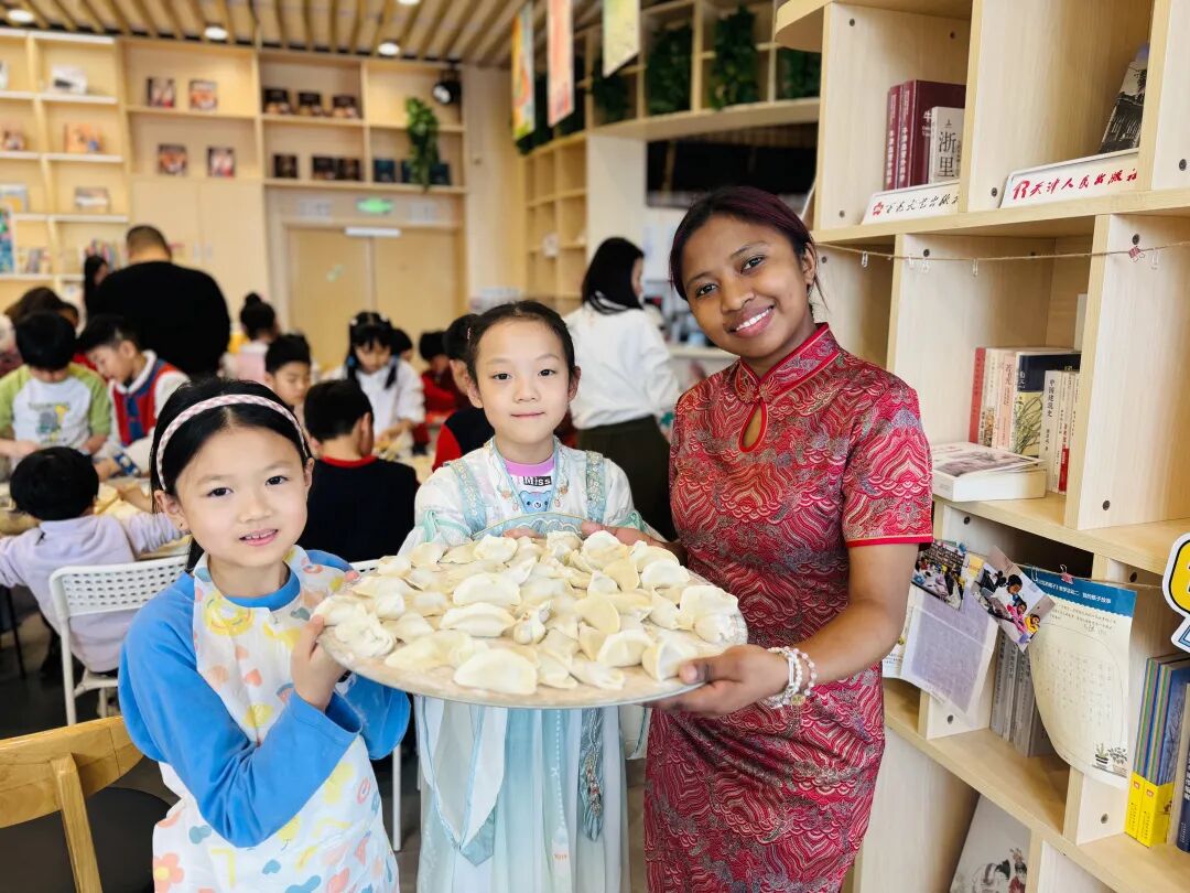 在包饺子、写福字互动环节,中外学子围坐一堂,一边共读春节故事,一边动手实践。留学生们饶有趣味地跟着出版社的编辑和小朋友学包饺子,一个个形态各异的饺子藏着马年的团圆心意。在书法桌前,墨香与书香交织,中国小学生们手把手教外国大朋友们写福字、写春联,笑声阵阵中,促进了中外文化交流互鉴。