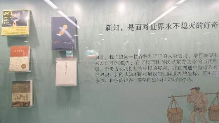 “新知”橱窗迎面扑来好奇的气息。一粒《谷物的故事》里藏着人类文明史诗,明代园林《园境》中回响东方美学的当代呼吸,《寻迹古中国》于考古现场打捞古国的痕迹,《偶遇》跨越艺术与生活的界限,《AI领航:无限升纬》则举目眺望未来科技的伦理疆界。新知,是面对世界永不熄灭的好奇。五本书,追问历史的纵深、科技的边界、美学的密码与文明的对话。