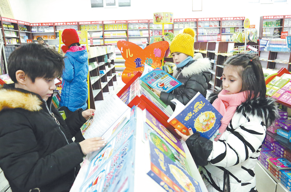 寒假期间,新疆库车市各族学生纷纷来到新华书店阅读、选购课外书籍,丰富假期生活。图为1月20日,孩子们在库车市新华书店读书。吐尔松·托胡提 摄