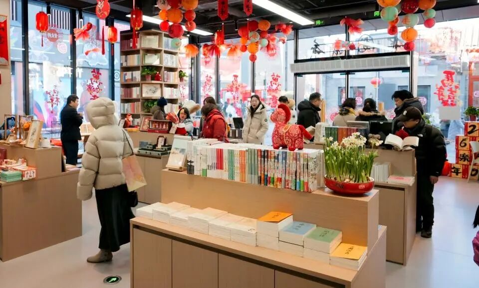 ▲2026年2月8日,北京,室外天寒地冻,刚开张的中国书店隆福寺店内水仙花开、春意融融。新华网记者 李雪芹 摄