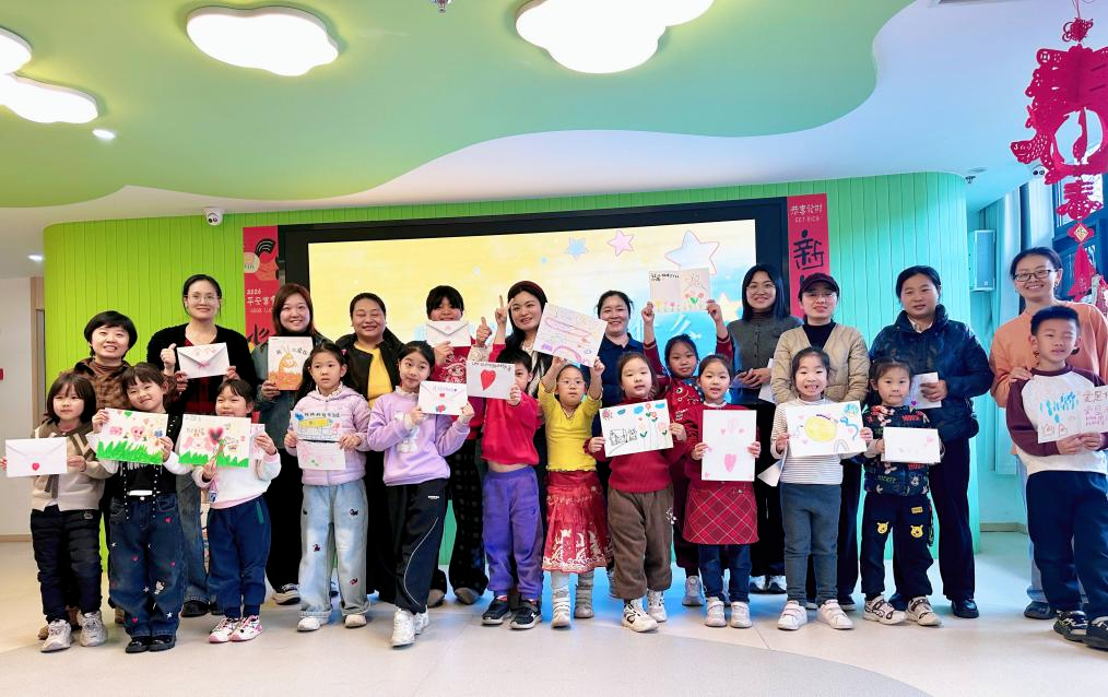 活动中,新蕾出版社品牌运营中心主任王俏涵带领社区30组家庭以书为媒开展了一场关于爱的表达的亲子阅读活动。通过分享细腻的图画和温暖的文字,让孩子们感受亲情、友情中爱的不同形态;通过制作爱的卡片,表演亲子手势舞,让阅读成为连接情感的桥梁;通过家庭共读指导,帮助家长掌握科学的伴读方法,引导孩子在互动中深化对故事的理解。