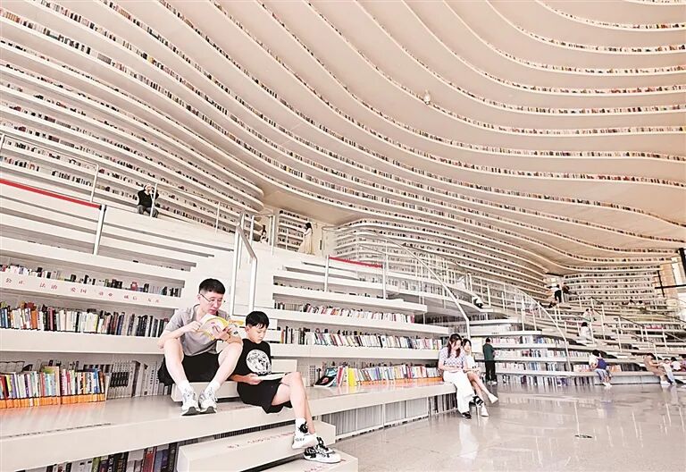 ▲市民在天津滨海新区图书馆阅读。新华社发